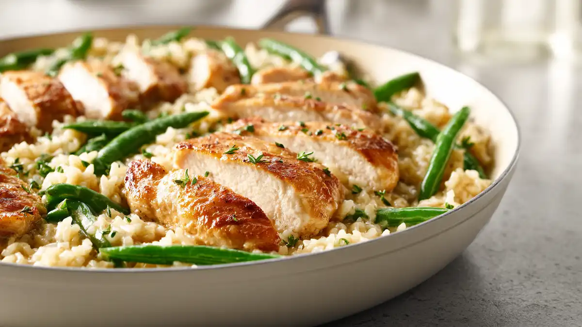 This cheesy skillet chicken and rice with green beans is the kind of cozy, family-friendly dinner that saves busy weeknights. Made in one pan with simple, wholesome ingredients, it delivers creamy, comforting flavor without processed shortcuts. Tender chicken, fluffy rice, and crisp green beans come together in a rich, cheesy texture that feels indulgent yet approachable. Perfect for meal prep or an easy Sunday dinner, this skillet meal proves that comfort food can still be quick, satisfying, and stress-free.