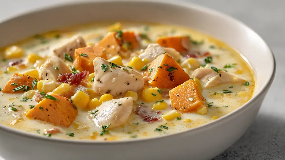 This Chicken Corn Chowder with Sweet Potatoes is the kind of cozy, creamy soup you’ll want on repeat especially on busy weeknights. It’s hearty from tender chicken, naturally sweet from sweet potatoes, and extra comforting thanks to a quick cornbread-style roux that thickens the broth into a rich chowder. You get that “smoky-sweet” balance without complicated steps, and it tastes even better the next day. If you love easy family dinners and comforting soup recipes, save this one: it’s warm, filling, and surprisingly unique in the best way.