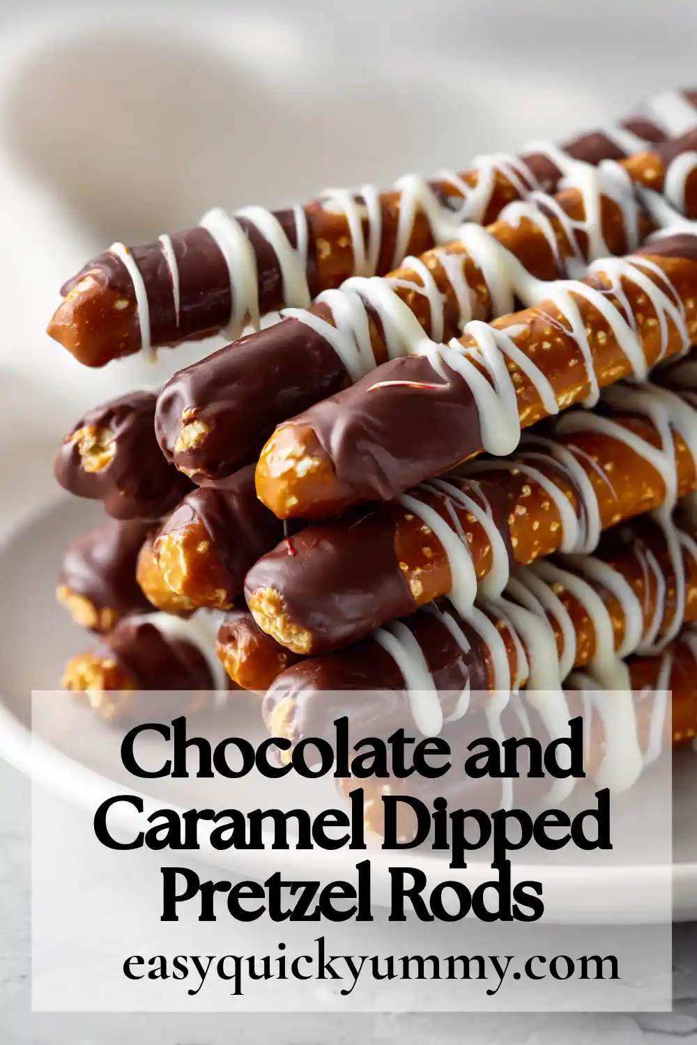 Using pretzel rods instead of twists makes these easier to dip and perfect for gifting. The length gives them an elegant look and allows generous layers of caramel and chocolate.