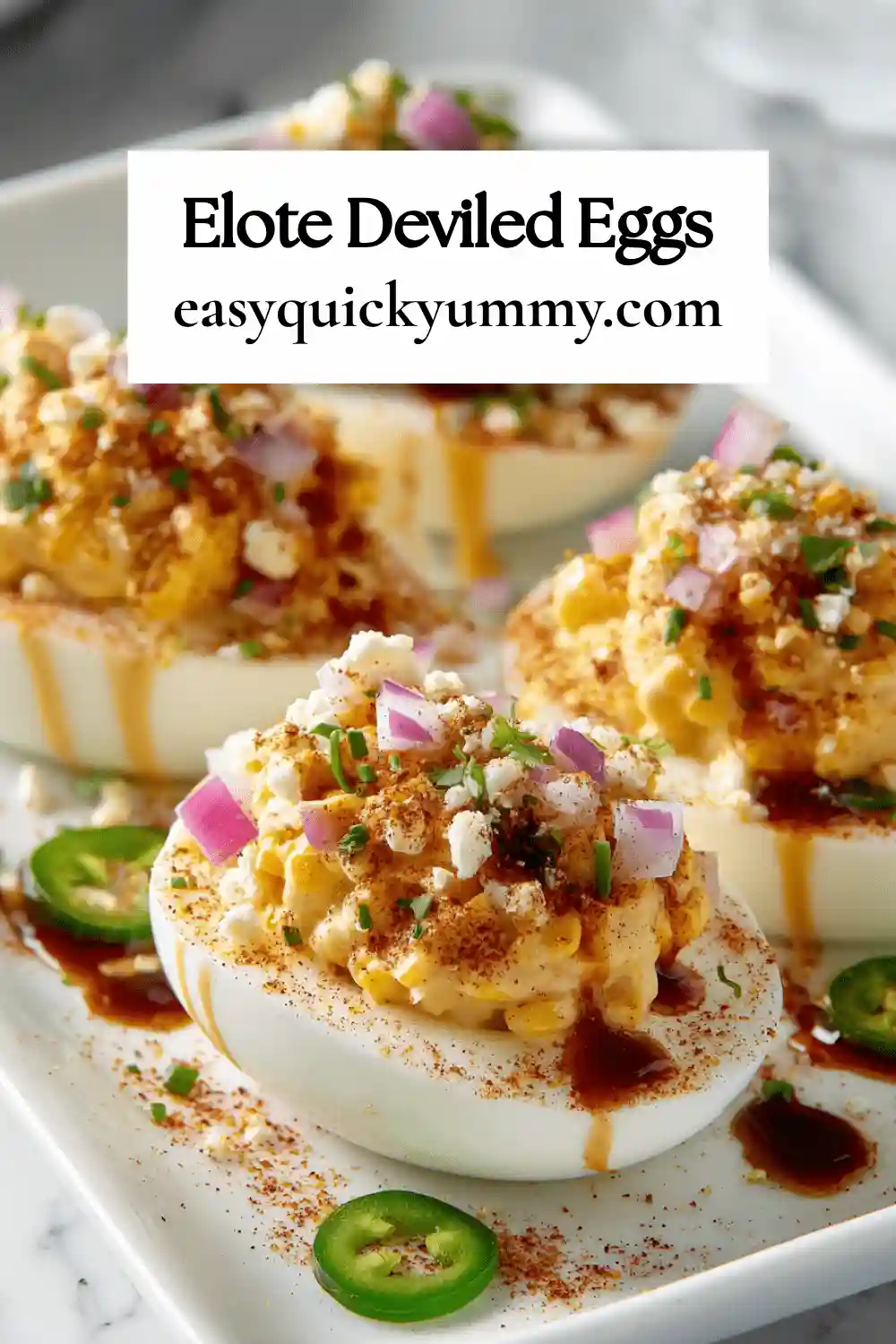 • Mild & Creamy Elote Eggs: Skip the jalapeño and chipotle mayo, and use plain mayo plus a tiny pinch of chili powder on top. Perfect for kids or guests who prefer flavor over heat.