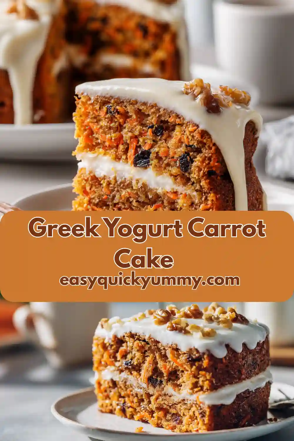This Greek Yogurt Carrot Cake is the kind of easy dessert that feels special without asking much from you. It has the soft, moist texture carrot cake lovers want, but with a lighter twist thanks to creamy Greek yogurt and just enough oil to keep every bite tender. Warm cinnamon, sweet carrots, crunchy walnuts, and chewy raisins make it feel comforting and classic, while the one-bowl method keeps cleanup simple. Whether you need an easy Easter dessert, a weekend bake, or a wholesome homemade treat to enjoy with coffee, this Pinterest-friendly carrot cake is a lovely recipe to save and make again.