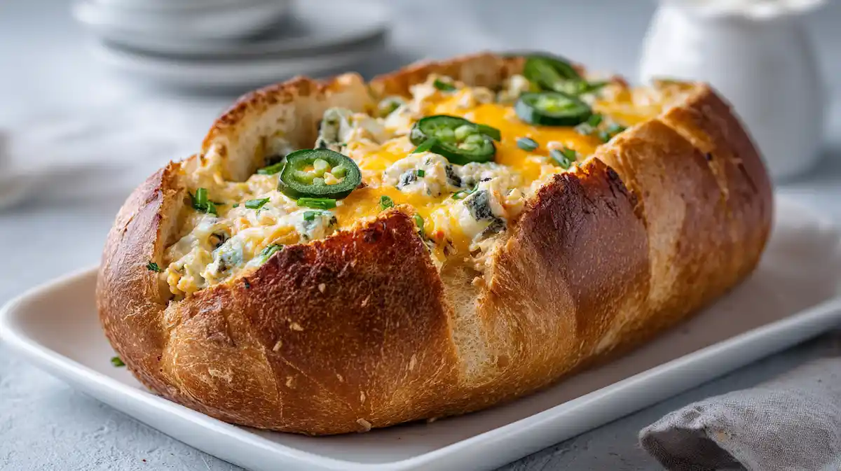 - Slow Cooker Party Dip: Skip the bread shell and add the mixed filling to a small slow cooker instead. Cook on Low until hot and melted, then serve with toasted baguette slices and veggies for an easy potluck option.