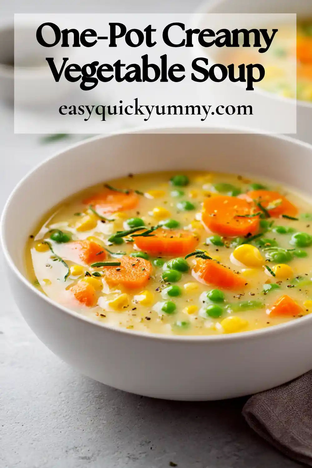 If you’re craving a cozy creamy vegetable soup that feels like comfort food but still packs in plenty of veggies, this one-pot recipe is for you. It’s warm, hearty, and gently herby, with tender carrots, celery, sweet corn, and peas in a silky, dairy-free creamy base. Everything comes together in one pot (hello, easy cleanup), making it perfect for a quick lunch or simple weeknight dinner. Serve it with crusty bread for dipping, and you’ve got the kind of meal that tastes even better the next day ideal for meal prep and leftovers.