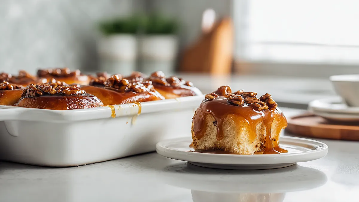 The “flip timing” is the secret that makes you look like a pro. Wait 10–15 minutes: long enough for the caramel to thicken so it doesn’t soak the buns, but not so long that it hardens in the pan. If it does firm up, warm the pan gently to loosen the caramel then try again.