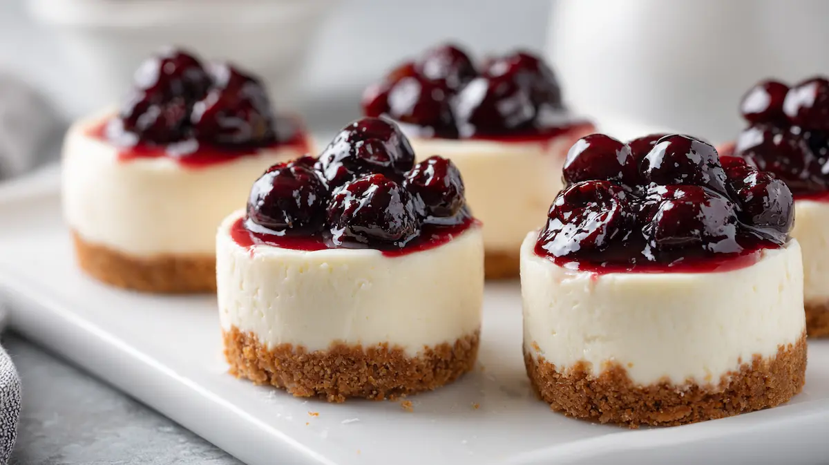 Mini cheesecakes are the ultimate “special occasion” dessert that doesn’t require any special occasion. Because they bake in a muffin tin, you skip the stress of water baths, springform pans, and slicing clean wedges. Each bite has the ideal crust-to-filling ratio, and serving is effortless just unwrap and top. They’re also beautifully portable for parties, bake sales, or holiday dessert tables where guests love grabbing a perfectly portioned sweet.
