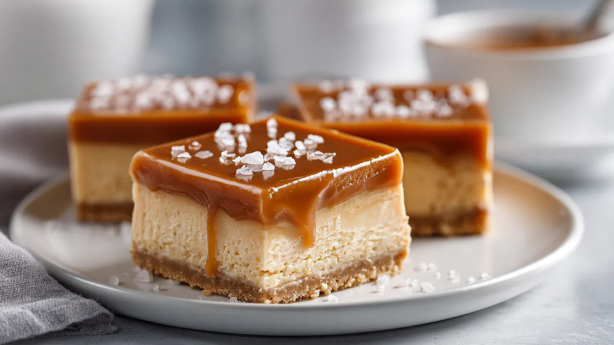 Ingredient spotlight: Full-fat cream cheese creates that plush, set-but-creamy texture you want in a bar. A sturdy biscuit (digestive or graham) makes a pleasantly sandy base that holds up under the filling. Thick salted caramel delivers the hero flavor look for one with real butter and cream, or use dulce de leche plus a pinch of sea salt. Optional fudge chunks add chewy pops; flaky sea salt brightens every slice.