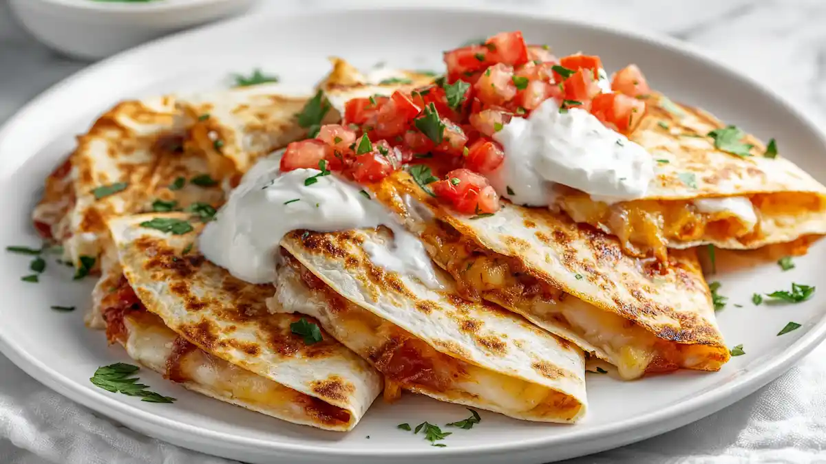 These crispy sheet pan quesadillas are the easiest way to feed a hungry crowd fast. Everything layers on one pan, gets pressed with a second sheet, and bakes until the tortillas are golden with melty cheese inside. Perfect for parties or quick dinners, this method delivers that irresistible oven-crisp bite without flipping individual quesadillas on the stovetop. With tender chicken, sautéed peppers and onions, and bold fajita seasoning, every slice tastes like a mini fiesta. Finish with sour cream, pico de gallo, and fresh cilantro and watch them vanish. Bonus: leftovers reheat beautifully for quick lunches. Minimal mess, maximum flavor this is a true time-saving party pleaser.