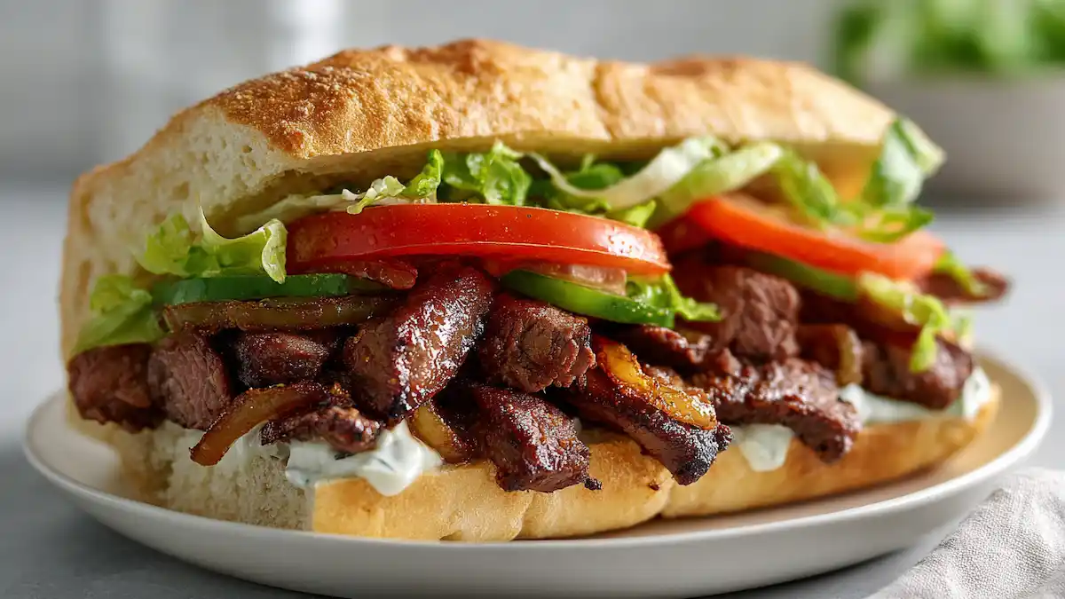 This recipe also fits beautifully into a busy evening rhythm. While the onions slowly cook, you can mix the aioli, prep the vegetables, and get the bread ready. Once the steak hits the pan, the rest comes together fast. That makes this sandwich feel impressive without requiring constant work. It is one of those meals that looks generous and restaurant-style, even though the process is straightforward.