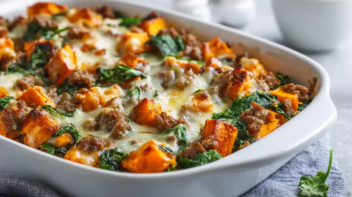 If you’re craving a cozy, easy dinner casserole that feels like comfort food but still keeps things clean and balanced, this sweet potato and ground beef casserole is the one to save. It’s hearty, cheesy, and loaded with flavor from sautéed onion, garlic, Italian herbs, and a big handful of spinach that melts right in. The best part? It’s simple meal prep magic make it once and enjoy quick, satisfying dinners all week. With tender sweet potatoes, savory beef, and a bubbly golden cheese top, this is a high-protein weeknight meal that tastes like you worked much harder than you did.
