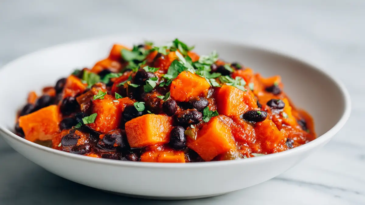 This cozy Sweet Potato & Black Bean Chili brings warmth and smoky flavor to your table in just 40 minutes. Packed with plant-based protein and fiber, it’s a wholesome dinner that’s hearty yet easy to make. Sweet potatoes add natural sweetness, black beans bring richness, and a blend of chili, cumin, and chipotle creates deep, comforting spice. Serve hot with lime and fresh cilantro for the ultimate vegan comfort meal.
