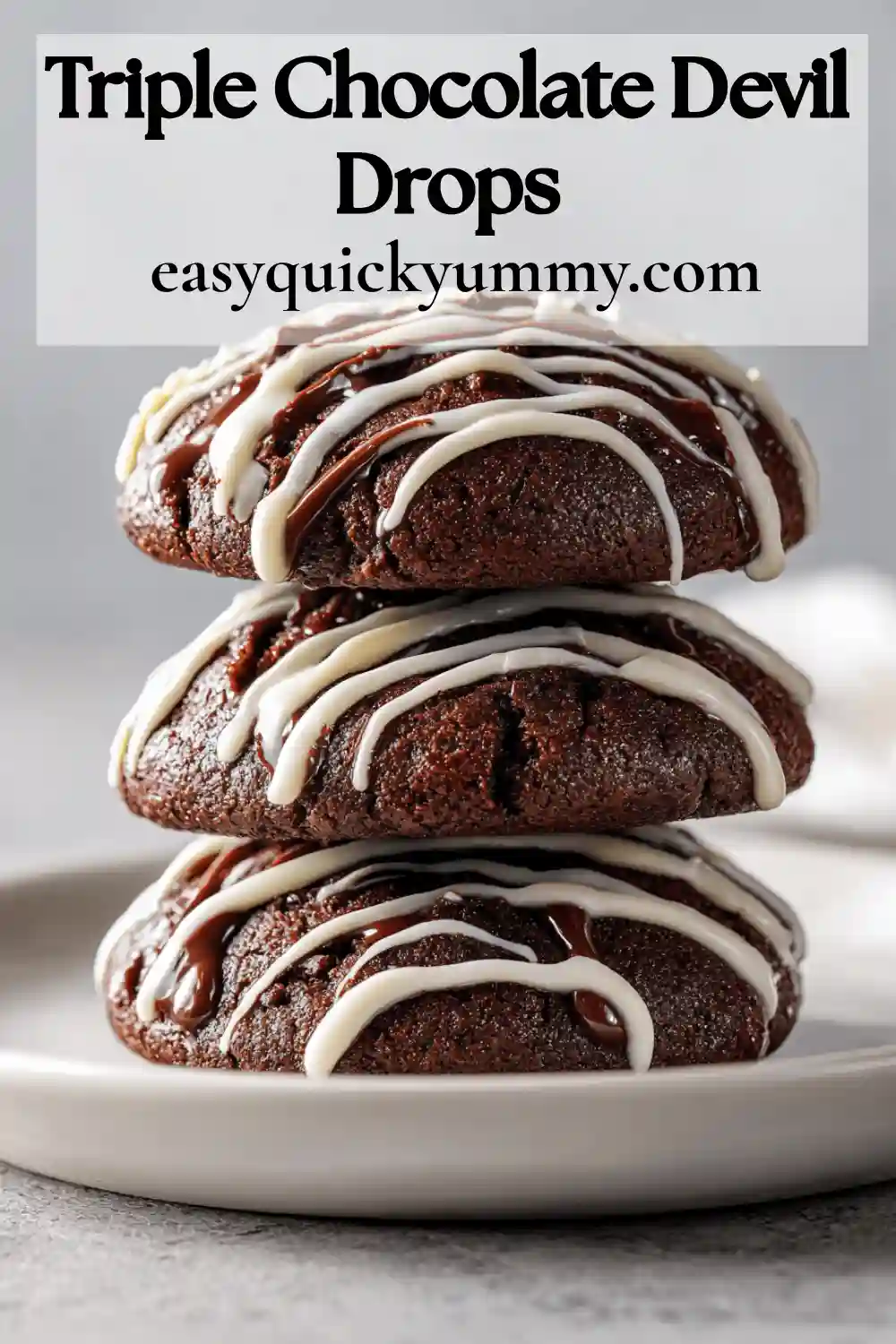 These Triple Chocolate Devil Drops are the “bring-again” dessert brownie-soft, intensely chocolatey, and finished with a gorgeous white chocolate drizzle. If you’re juggling a busy schedule but still want a homemade treat that looks impressive, save this recipe and bake a batch for your next cozy night in or holiday gathering.